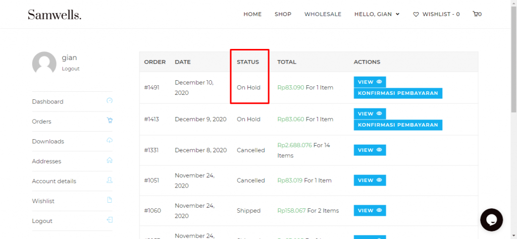 Lalu scroll kebawah dan pilih metode pembayaran setelah itu klik tombol place order